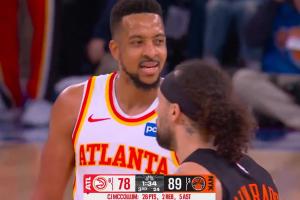 比賽第三節,老鷹球員CJ·麥科勒姆與尼克斯球員阿爾瓦拉多發生口角,雙方吃到技犯。尼克斯主場球迷開始高呼:“F**k CJ。”